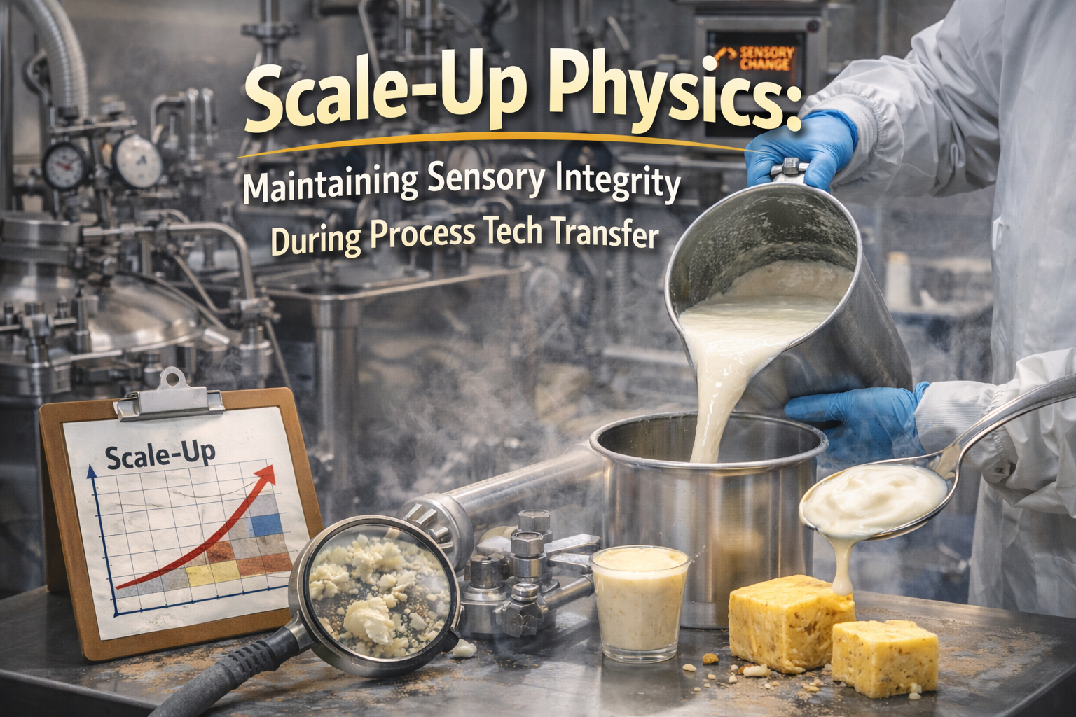A technical analysis of how shear rates, thermal mass, and cooling curves impact food flavor and texture during the transition from lab to production.